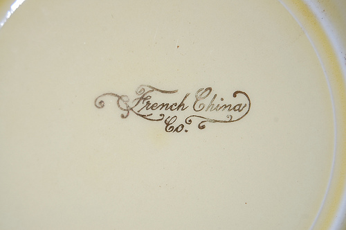 | According to Oldetyme, 1899 founded as the French China Company 1916 became part of the Sebring Manufacturing Co along with Strong Manufacturing and Saxon China (founded 1911). All 3 plants retained their individual names 1929 the Sebring group joined the American Chinaware Corporation 1931 the American Chinaware Corporation failed 1932 both French China and Saxon China stopped production 1934 they were combined and re-opened as the French-Saxon China Company 1964 purchased by Royal China Company of Sebring |