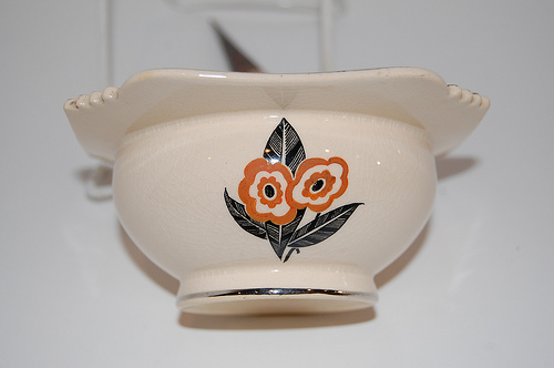 | Formerly (1920-1926) known as Crescent. Crescent China (1920-1926) became the Leigh after F.A. Sebring's son Charles Leigh Sebring took over management. He was a pioneer of ivory body dinnerware. Its noted color is an umber tone, a warm, deep ivory hue. Gale Turnbull was the designer, Joseph Palin Thorley, technical supervisor. The line was noted for being entirely different from any other on the market. Their art ware line included lamp bases, vases, flower bowls, and fruit bowls, wall pockets, book ends, candlesticks, tobacco jars and ash trays. They also included breakfast sets and bridge sets in the same umber tone. It existed from 1926-1931. After Leigh went out of business, Alliance Manufacturing Company moved in. |